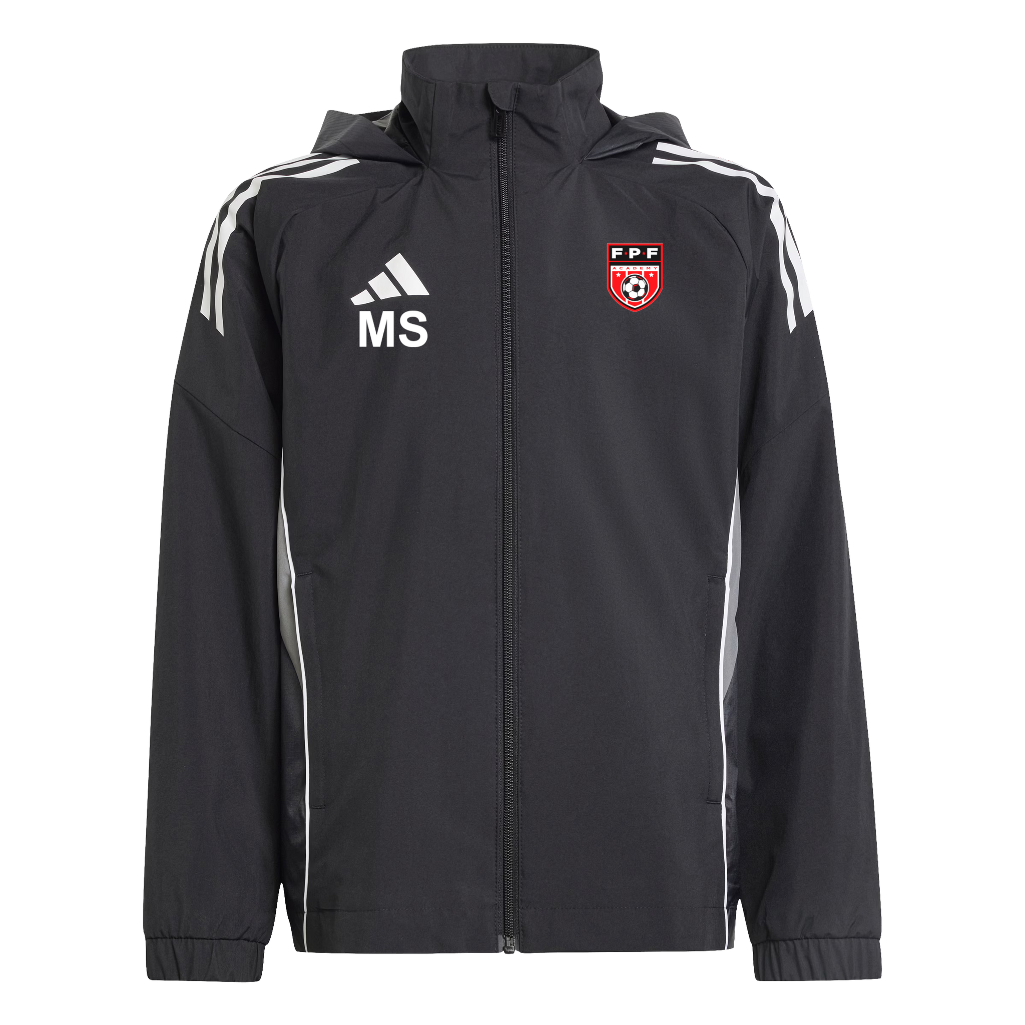 Adidas Junior Tiro 25 Competition All Weather Jacket - with embroidered FPF Academy badge, printed initials and backprint